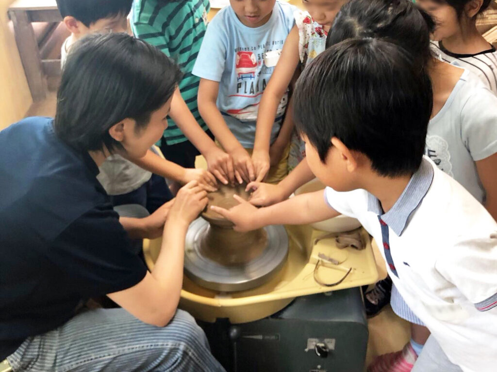 人気の電動ろくろ教室は春休み、夏休みに開催しています。